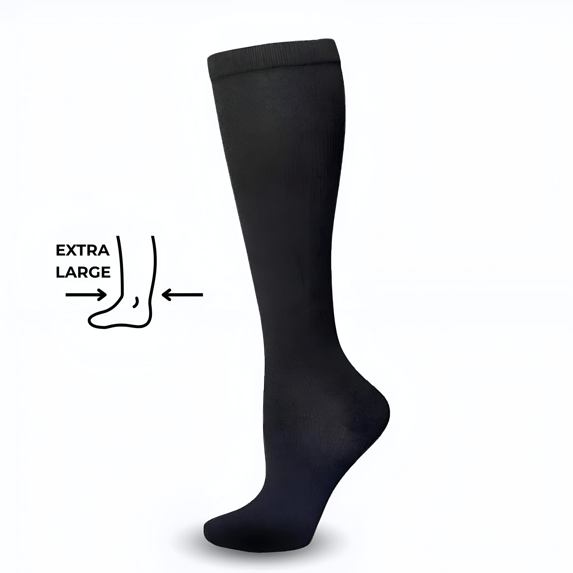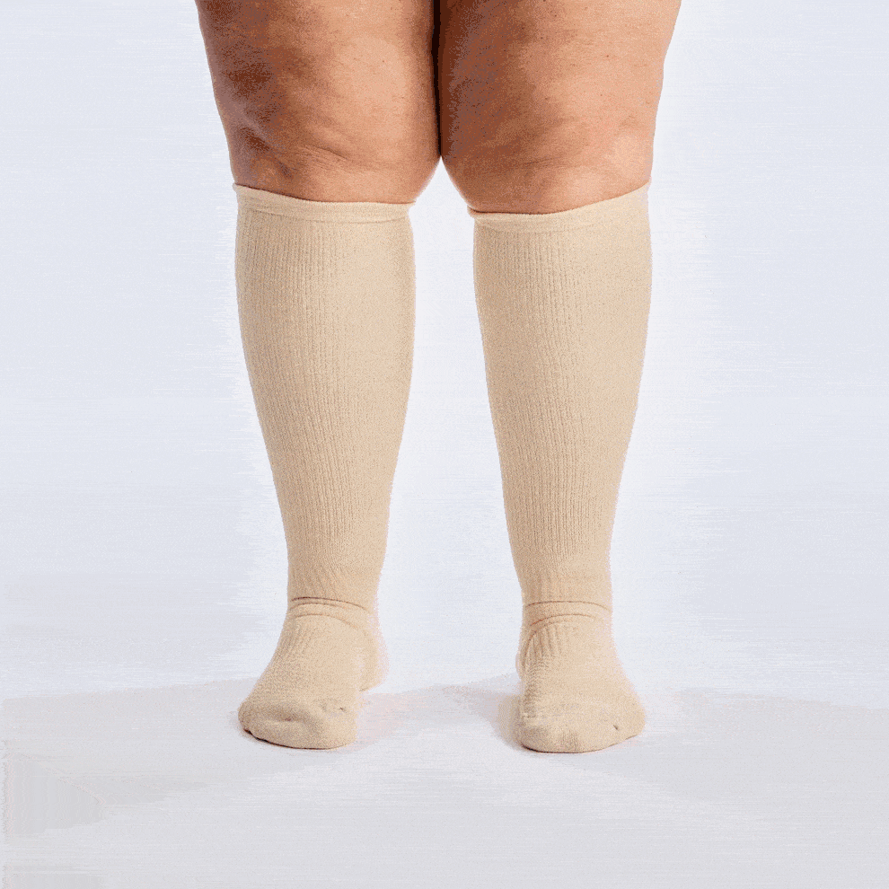 Les bas de confort Ergotiva™, quant à eux, n’exercent aucune compression. Ils sont ultra-doux et extensibles, pensés pour les jambes et pieds sensibles. Leur coupe spéciale offre plus d’espace au niveau du mollet, convenant jusqu’à 60 cm de circonférence.