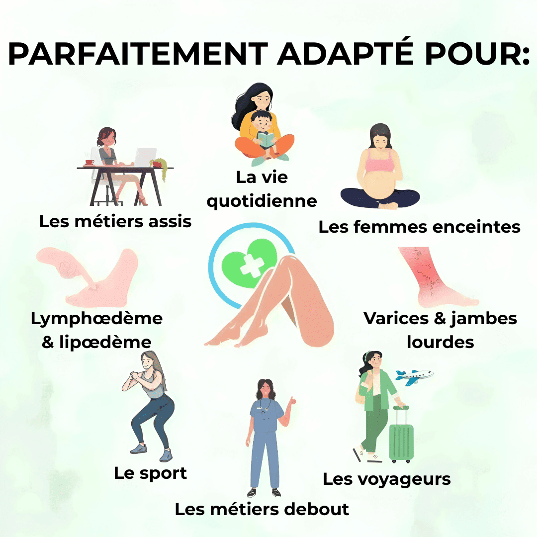 Faciles à enfiler comme des chaussettes classiques, ils ne laissent aucune marque de pression sur la peau.